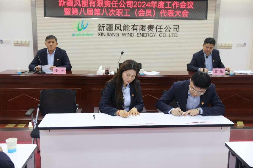 接著,公司黨委副書記、副總經(jīng)理黃樂,黨委委員、副總經(jīng)理李平分別宣讀了新疆風能有限責任公司2024年工作要點、黨建工作要點、安全環(huán)保工作要點及任務(wù)分解。李雪梅分別與高級管理人員,各支部、部門簽訂《黨建工作目標責任書》《業(yè)績考核責任書》《安全生產(chǎn)目標責任書》。