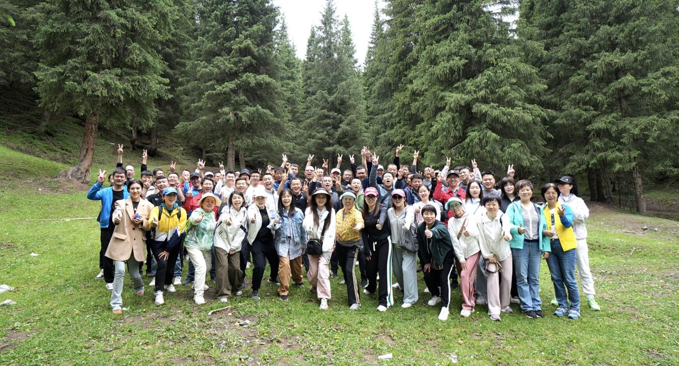 天山草場(chǎng)草色如茵、綠意盎然,如畫(huà)的風(fēng)景令人心曠神怡。大家健步走在徒步大道上,呼吸著新鮮的空氣,感受著大自然的風(fēng)光。一路上,大家邊走邊聊,時(shí)而駐足欣賞,時(shí)而選景拍照,歡歌笑語(yǔ)如影隨形。本次徒步行程近5公里,大家互相鼓勵(lì)、一往無(wú)前,經(jīng)過(guò)一個(gè)半小時(shí)的努力,終于順利抵達(dá)目的地。