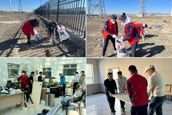 活動(dòng)通知一經(jīng)發(fā)布,公司各黨支部積極響應(yīng),全體黨員對(duì)活動(dòng)展現(xiàn)出極高的熱情。25日下午,公司黨員干部精神飽滿地集合出發(fā),前往達(dá)坂城風(fēng)電場。到達(dá)目的地后,所有人分成兩組,分別對(duì)場站內(nèi)部和外部進(jìn)行清潔。大家分工明確、干勁十足,對(duì)場站內(nèi)部的桌椅、設(shè)備進(jìn)行規(guī)整、清潔,對(duì)場站周邊的垃圾、石塊等進(jìn)行全面掃除,不放過任何一個(gè)清潔死角。十月的戈壁寒風(fēng)呼呼作響,但寒冷的天氣澆不滅火熱的心,大家熱火朝天地打掃著場區(qū)的衛(wèi)生,用一次次彎腰踐行著“生態(tài)優(yōu)先、綠色發(fā)展”的理念,使場區(qū)環(huán)境煥然一新,忙碌的身影形成了一道靚麗的風(fēng)景線?;顒?dòng)的最后,大家合影留念,記錄下了這一難忘的時(shí)刻。