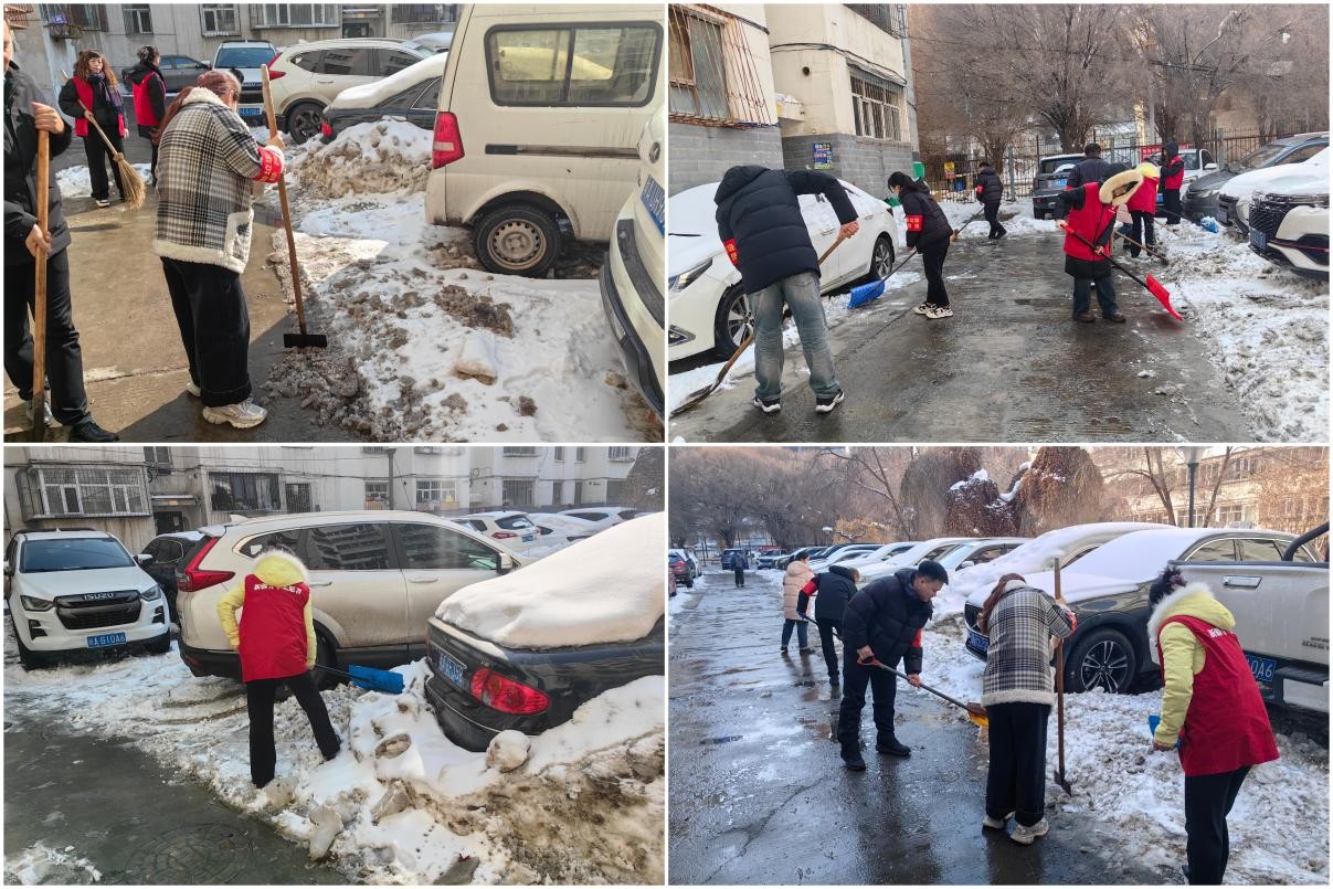 3月5日上午,烏魯木齊市突降大雪,老舊小區(qū)道路積雪結(jié)冰嚴(yán)重,給居民出行帶來安全隱患。為切實(shí)踐行“我為群眾辦實(shí)事”,保障大家的出行安全,風(fēng)能公司迅速響應(yīng)昆明路社區(qū)號召,組織黨員干部職工迅速行動,與社區(qū)志愿者分成多個小組,帶上掃帚、鐵鍬、推雪板等清潔工具,對公司周圍老舊小區(qū)的環(huán)境衛(wèi)生及路面積雪進(jìn)行全面整治。隨著中午溫度回升,部分積雪融化導(dǎo)致路面濕滑、泥濘不堪,且小區(qū)設(shè)施老舊、缺乏專業(yè)清雪設(shè)備、這給清掃工作帶來了極大的不便。但志愿者們干勁不減,大家相互配合、齊心協(xié)力,有人用鐵鍬鑿開角落處堆積的厚重冰層,三、兩人合力推運(yùn)積雪、冰層至集中點(diǎn),還有人拿著掃帚清掃殘留的雪渣,防止路面再次結(jié)冰打滑。經(jīng)過數(shù)個小時的奮戰(zhàn),及時消除了老舊小區(qū)因積雪結(jié)冰帶來的安全隱患,小區(qū)路面環(huán)境煥然一新。