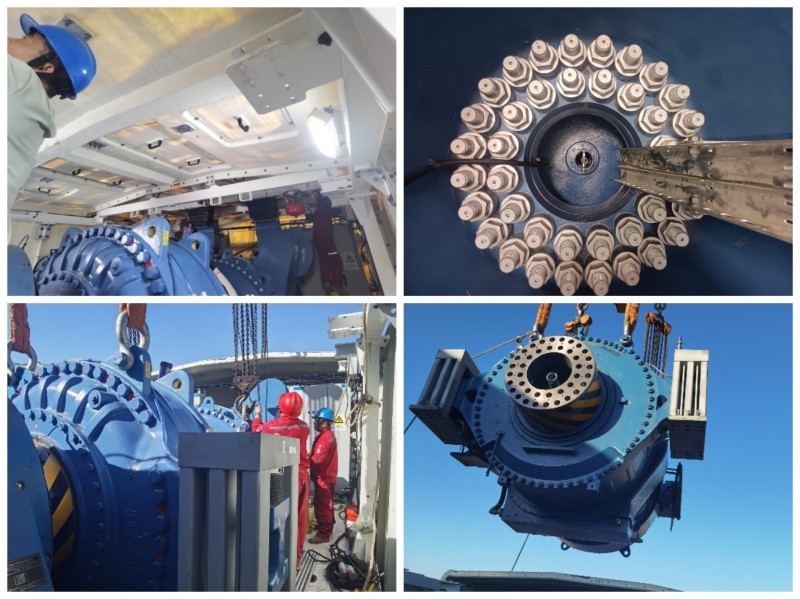 5月正值春季大風(fēng)頻發(fā),這給E2機(jī)組齒輪箱恢復(fù)工作帶來巨大挑戰(zhàn)。面對嚴(yán)峻形勢,風(fēng)電場積極應(yīng)對,不斷優(yōu)化工作方案,精心調(diào)整吊裝策略,并成立專項(xiàng)工作小組。面對時間緊、任務(wù)重等諸多不利條件,小組人員嚴(yán)陣以待、全力以赴投入到更換工作中。吊裝過程中,工作人員緊盯風(fēng)速變化,精準(zhǔn)抓住風(fēng)速6米/秒以下的短暫窗口期,爭分奪秒提前拆卸齒輪箱附件。地面與機(jī)艙作業(yè)人員密切配合,嚴(yán)格把控每一個關(guān)鍵環(huán)節(jié)。從齒輪箱連接油管、傳感器、主軸連接螺栓,到齒輪箱彈性支撐的安裝工藝,每一步操作都細(xì)致入微、嚴(yán)謹(jǐn)規(guī)范。經(jīng)過運(yùn)維人員12小時的艱苦奮戰(zhàn),E2齒輪箱吊裝更換工作順利完成。